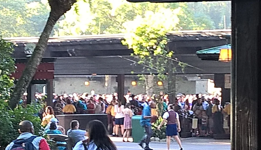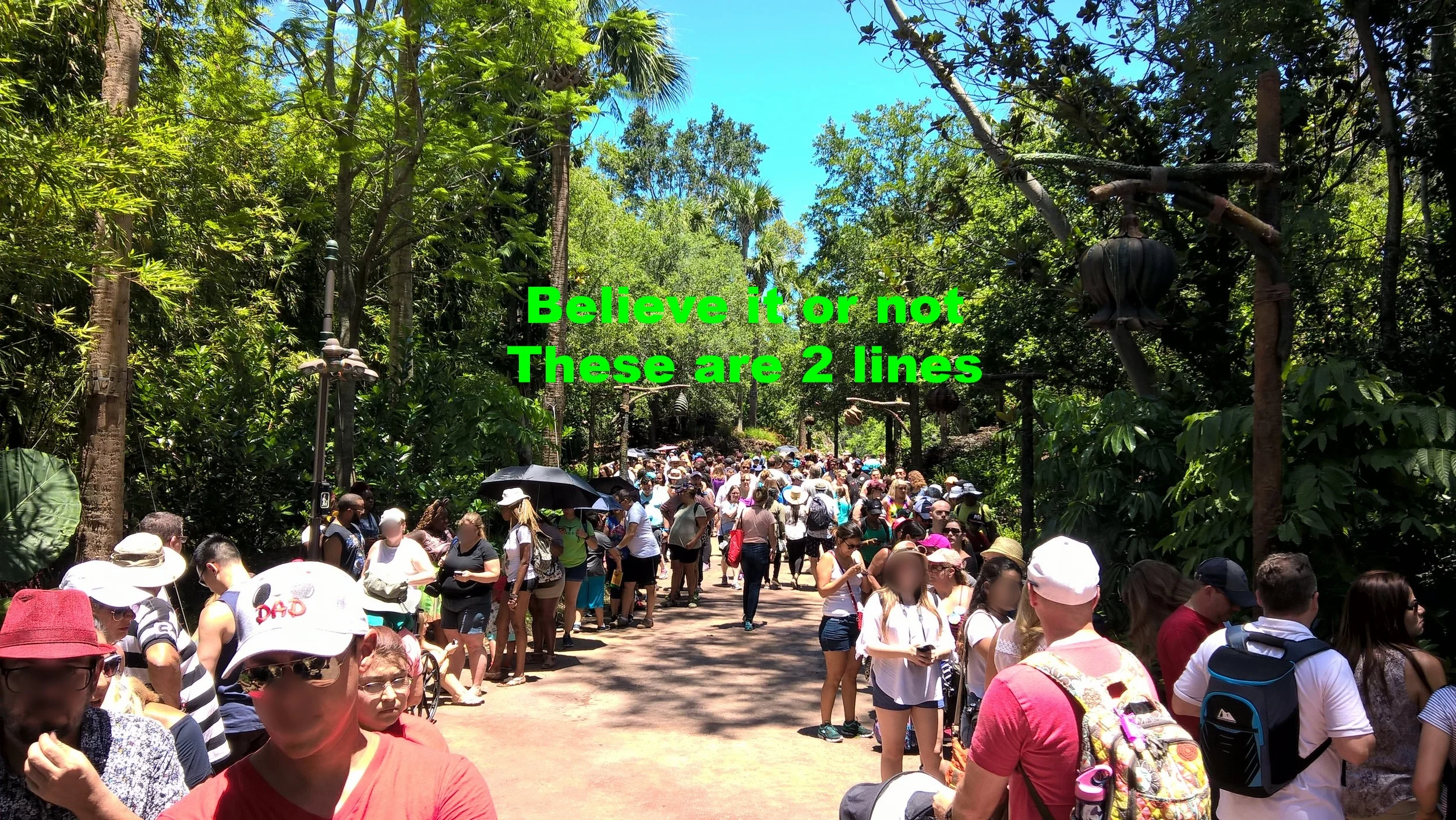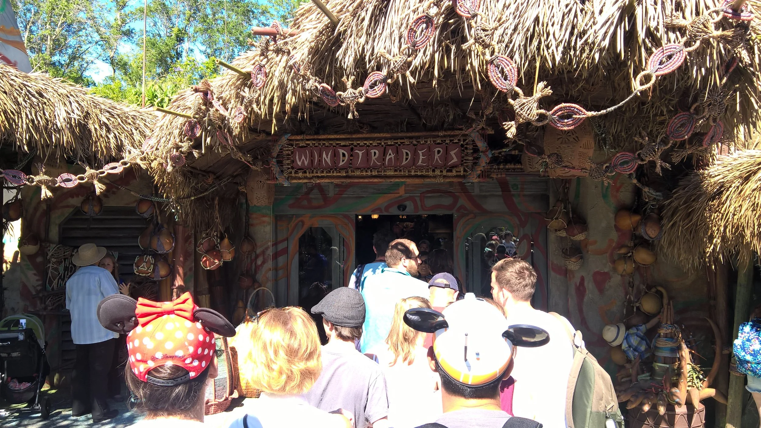 So for the only moment of the day everything sped up & we were onto our first ride. However, we will be covering the rides, merchandise, landscape, & food in further entries. This post is strictly for the madness that was opening day. A very controlled madness much to Disney's credit, but madness nonetheless. After our refreshing river ride we found ourselves in what do we do next mode. That's when we figured we'd get the shopping out of the way. Sounds easy enough right? Wrong. there was a 2 hour plus line just to get into Windtraders, the resident store of the Valley of Mo'ara. Which we had to brave as I had some specific things in mind, opening day merch, a Na'vi translator, & most importantly adopting a Banshee. More on that to come in further posts. I was amazed at how many people were standing in line just to see what to spend money on. This line, like all the others, stayed like this throughout the day. Eventually becoming the smallest wait time of 30- 45 minutes.